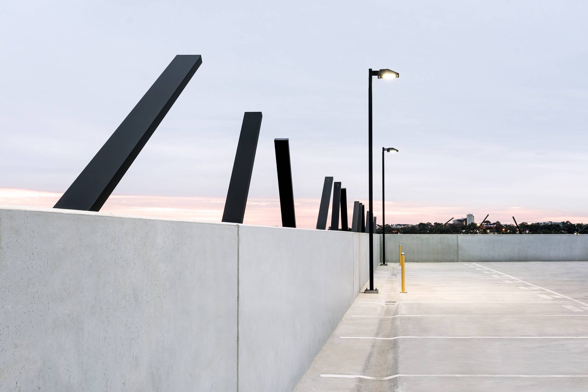Winning the contract for BMW was a great chance for Louvreclad to really get creative. The Caprice Series® provided the answer for stunning architectural feature fins which spanned 40 metres long and across 5 levels of carpark. Thus turning it into an aesthetic contemporary art backdrop for surrounding offices. One of the key challenges on this project was setting out the brackets for this unsystematic design. To ensure every bracket was in its right place, Louvreclad engaged a building surveyor to put dot points across the façade according to Cad Drawing. Our team could then install each bracket with corresponding Caprice panel and achieve the architects design intent. Louvreclad also supplied and installed the Orion Series® louvres, one of our smallest fixed louvre profiles to provide a discreet ventilation throughout the building.