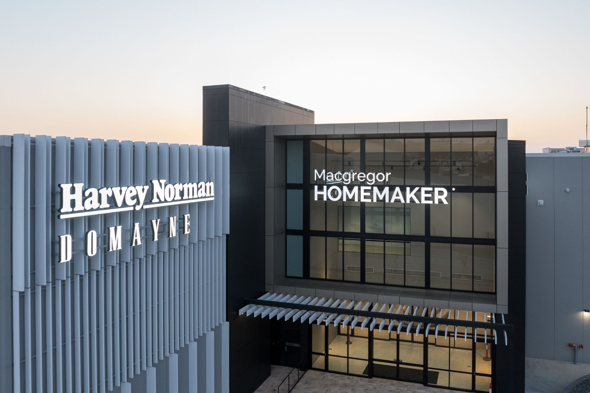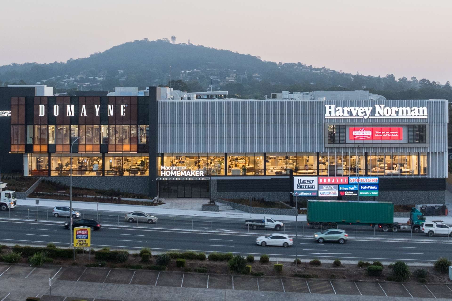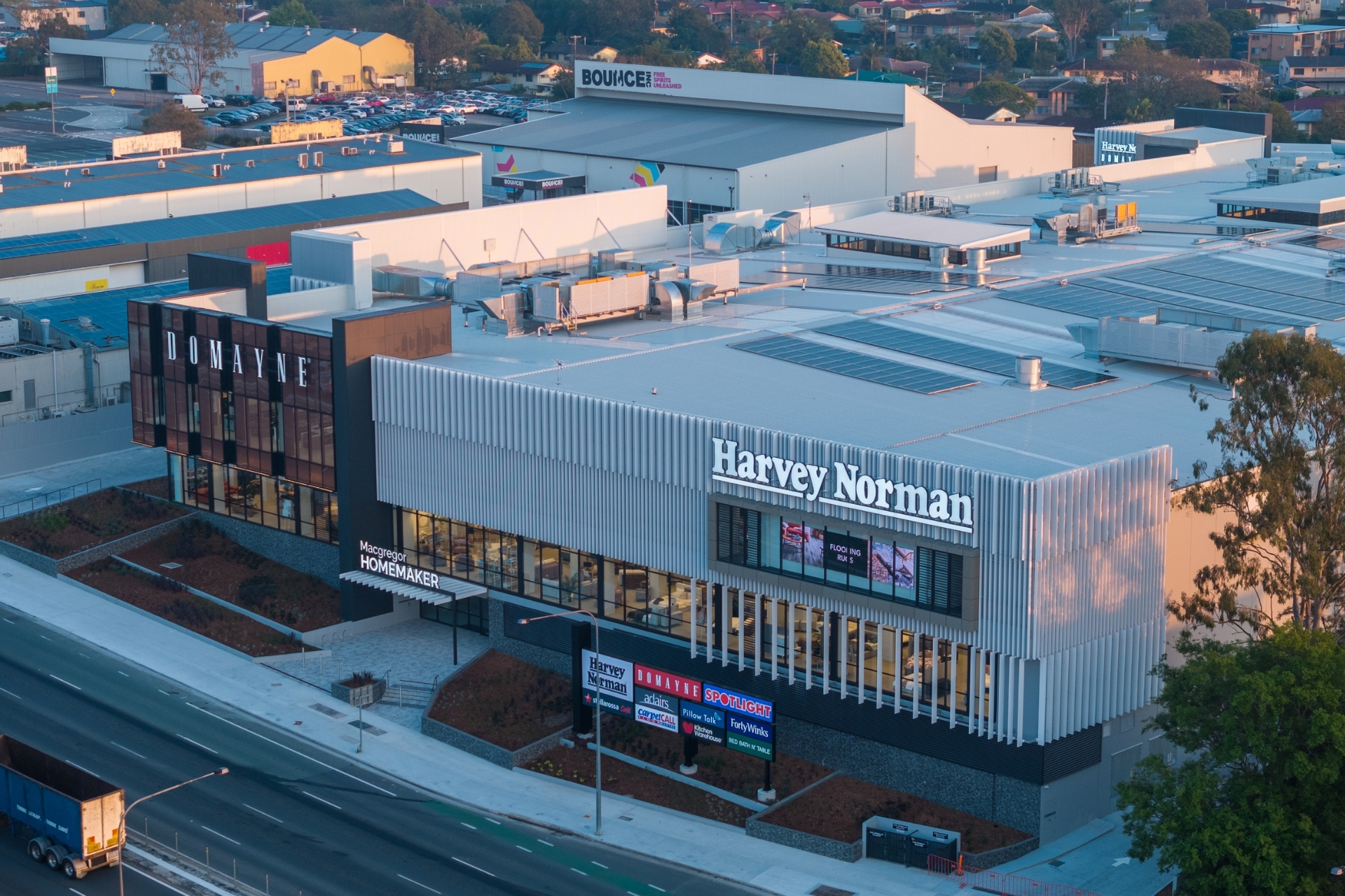 Designed by Leffler Simes Architects and delivered by ADCO Constructions with Calardu MacGregor, the Harvey Norman Retail Development in Macgregor required a façade solution that balanced architectural rhythm with robust functionality.