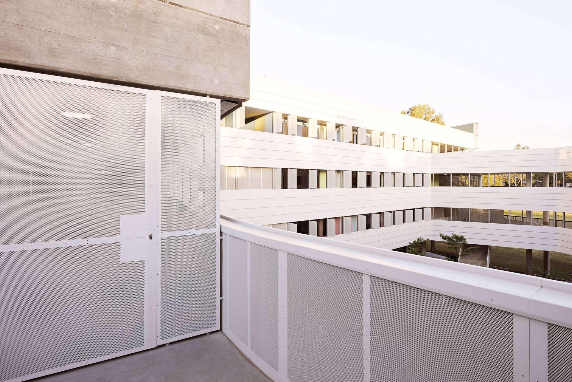 Phil Hindmarsh (Lead Architect) from Hayball presented the Indooroopilly SHS project to our team after receiving a technical presentation from Louvreclad. The Department of Education brief called for a proprietary cladding system that was robust enough to withstand the unpredictable impacts of a school setting, whilst still being low maintenance, within budget and easy to build. Our solution was a combination of Polaris Series® and Platinum Series®, a 3mm perforated and solid aluminium plate rain screen cladding system. Louvreclad Platinum Series® provided the perfect combination of proprietary details and bespoke potentials. This ensured that while the proprietary component met the Department Of Education requirements, the system was also able to be customised and engineered to suit the architectural design intent – a horizontal linear aesthetic that referenced the weatherboards language synonymous with the heritage of schools in Queensland Initially there was some concern as to the strength of system, leading to the design and fabrication of a full-scale prototype of the Platinum Series®. The prototype was immediately approved by all relevant stakeholders as it ticked all the boxes in both form and function. Our team then worked with the Architect to create the architectural specification for the project, mitigating risk for the head contractor and outlining the design and engineering requirements. This included the necessary quality and non-combustible certification required. Adco Constructions was the successful contractor on the project and with the support of the Architect, Louvreclad was contracted to design, engineer, manufacture and install the Platinum Series® and Polaris Series® 103 solid aluminium cladding system. The scope included Sunscreens, Balustrades, and Sun Hoods. This undulating, curvilinear façade was finished in Interpon® Surfmist Satin and Matt Powder Coating and has become a critically acclaimed project within the industry since completion. This became another successful Louvreclad project, showing the value that can be added when our team is involved at early design phase. Lead Architect Phil Hindmarsh proclaims that,“Louvreclad facilitated an outcome that exceeded the Department of Education’s expectations for a buildings cladding system.”
