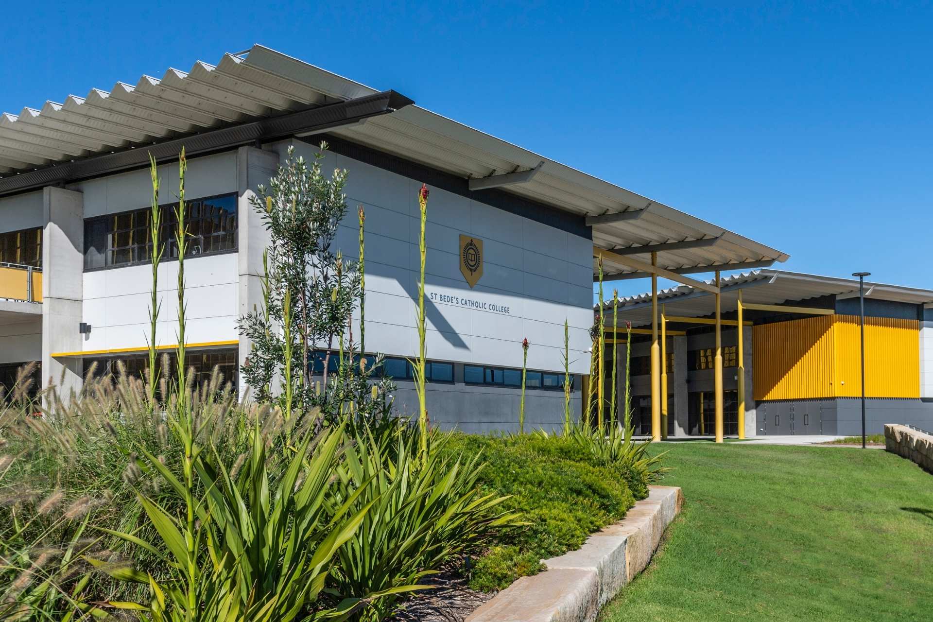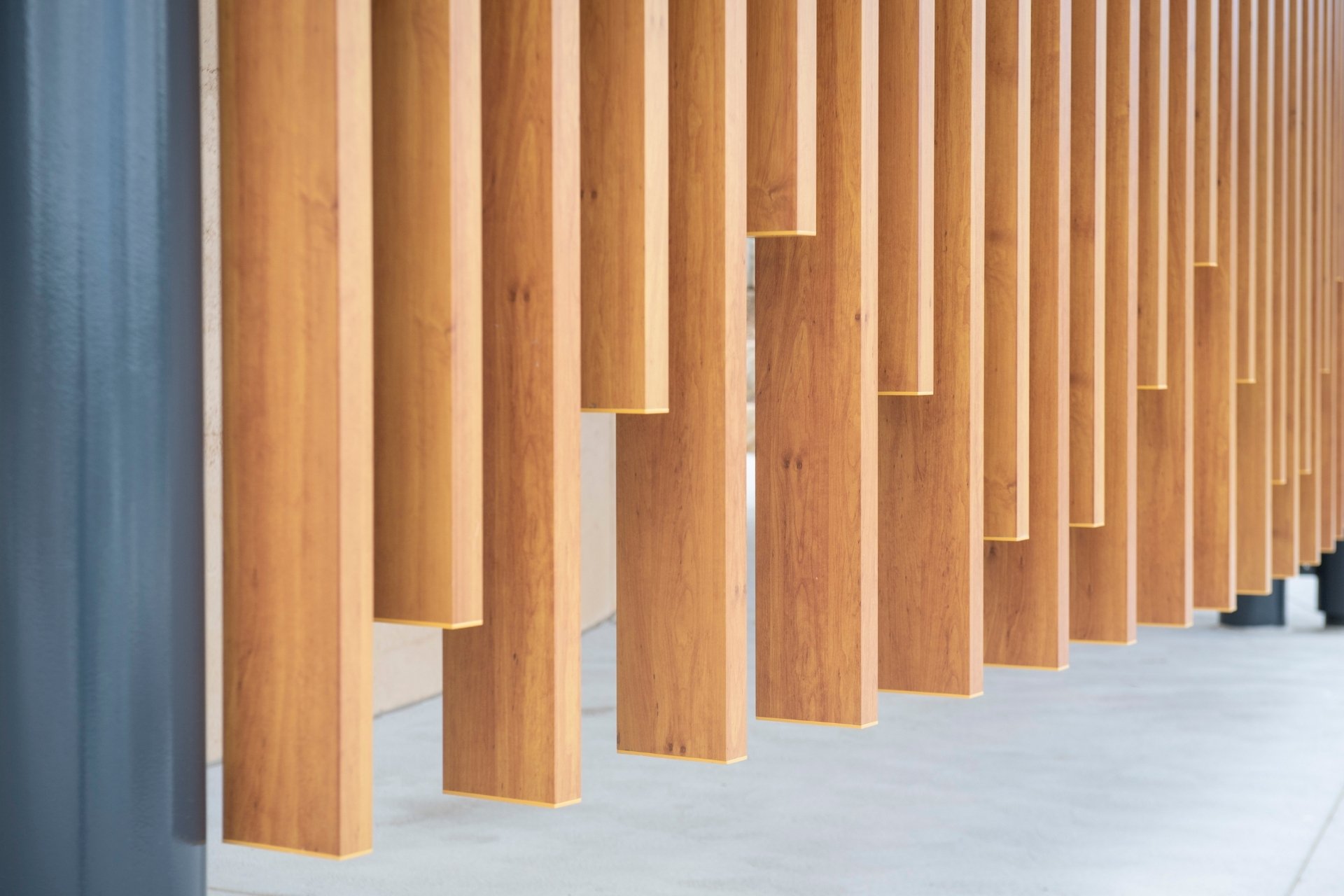 St Bede’s Catholic College showcases a series of internal Louvreclad Barossa Series® 150×45 vertical batten screens that curve to create social nooks and define the internal circulation trail which SHAC architects describe as the ‘Peregrine Trail’ (Peregrination: a meandering journey of discovery). Powdercoated in Decowood Silky Oak timber like finish, the screen brings a feeling of real timber and warmth to this contemporary interior.