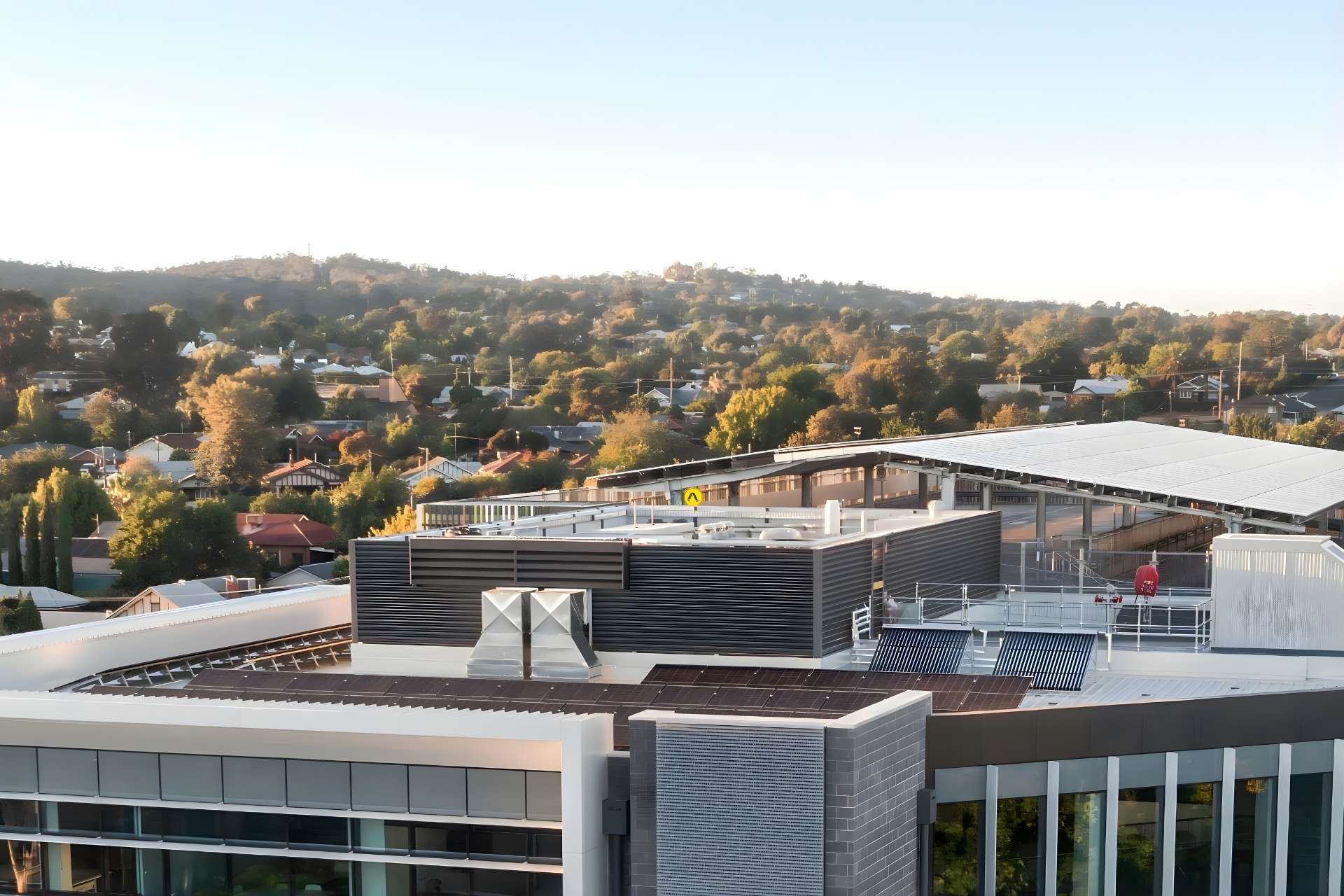 Varsity Series® Rollformed Louvres and Doors provide secure, ventilated plant enclosures spanning multiple elevations and incorporate single and double access doors for functional accessibility.